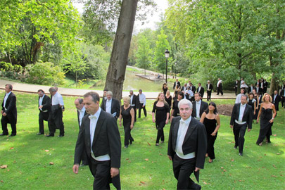 Omenaldiak agintari ugari eta Orkestraren hastapenetan esku hartu zuten pertsona ugari bildu zituen Kursaal Auditorioan. Aipatu kultur sailburu eta Orkestraren presidente Blanca Urgellez gain, bertan izan ziren Karlos Garaikoetxea lehendakari ohia,